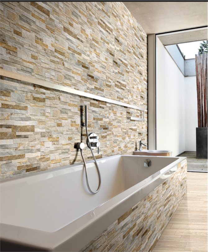 In gres porcellanato , uno stile senza tempo  .Il tono naturale della pietra ricreata  dona un aspetto sofisticato e moderno Grazie alla sua versatilità, il rivestimento effetto pietra si combina facilmente con diversi stili di arredo. è perfetto per creare un'atmosfera accogliente e autentica. l' effetto pietra si adatta bene sia agli ambienti interni che a quelli esterni.  disponibile in due colorazioni nella  misura  31x62