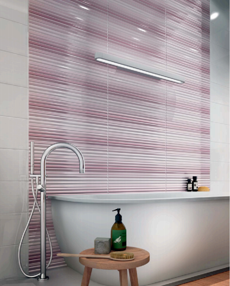 Si passa da piastrelle 3D monototinta a effetto muretto, studiati per chi cerca l’eleganza senza tempo, a piastrelle effetto diamante. La vivacità di preziosi riflessi di luce, in versione mono e multicolor. A ciò si vanno ad aggiungere le particolari decorazioni a righe a tutta parete, interpreti senza ombra di dubbio di un design up-todate!