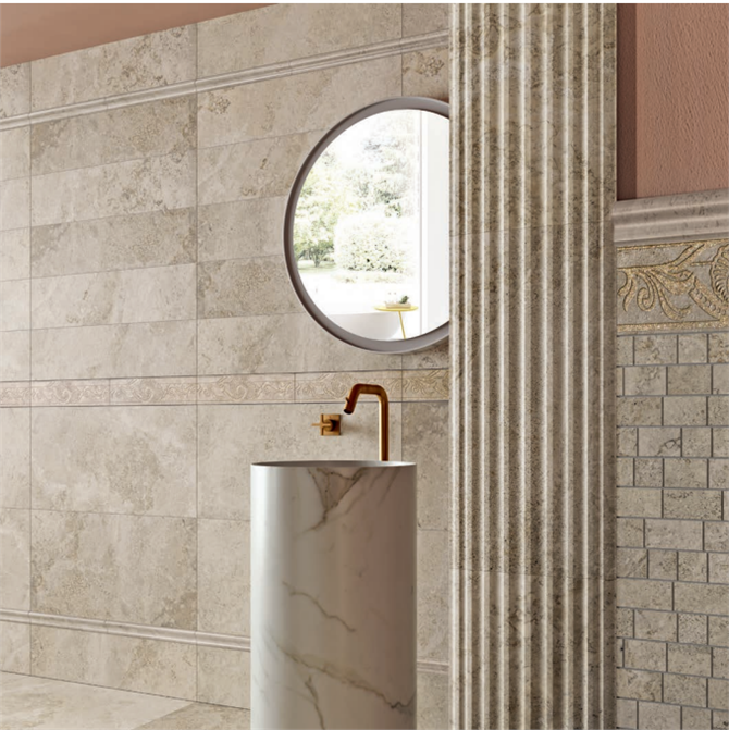 ESEDRA Pensata per gli spazi sofisticati e moderni, la collezione Esedra, svela il gusto raffinato di chi la sceglie per il proprio quotidiano. Pensata per progetti perfettamente coordinati di pavimento e rivestimento.Un total look in grado di vestire in modo omogeneo pavimenti e pareti dal gusto classico ma con un tocco di design contemporaneo. Per chi ama la bellezza materica della pietra e desidera uno stile rigoroso e allo stesso tempo raffinata. Superfici nate dalla lavorazione della materia,un perfetto equilibriotra eleganza e artigianalità. Colori e decori creano una sinfonia cromatica elegante, dall ’atmosfera vivace.