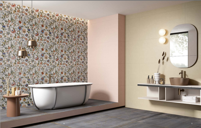 GIOIA conta una palette di ben 10 tonalità, tinte unite in pasta bianca da rivestimento, morbide al tatto, con una superficie leggermente strutturata. Le diverse colorazioni scelgono un formato di prestigio, ma nello stesso tempo facile da movimentare, come il 60x120 rettificato.