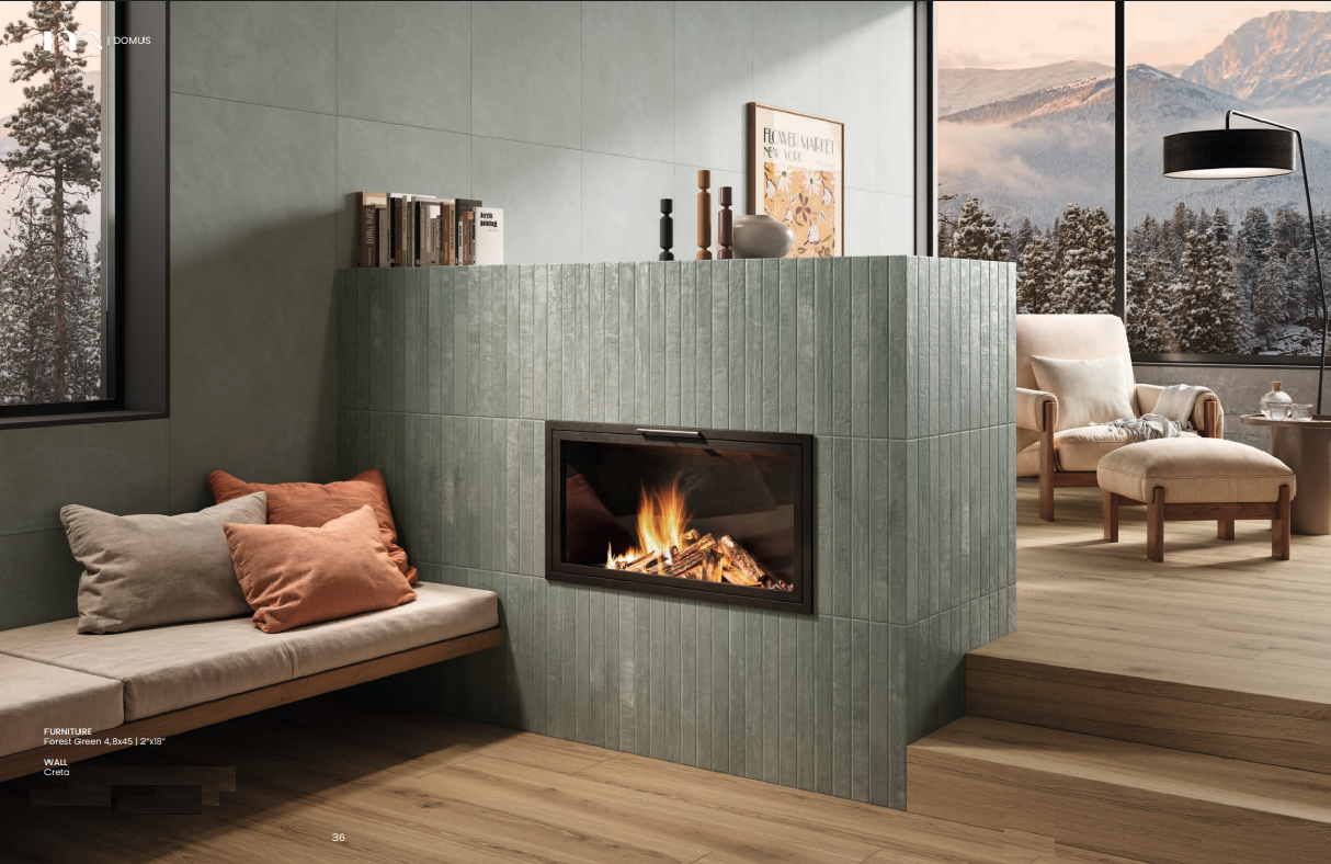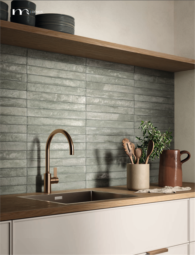 Freschezza rigenerante L’abbraccio fresco e rigenerante dei boschi, che porta armonia e serenità in ogni ambiente.Domus si integra perfettamente offrendo infinite possibilità di abbinamenti e soluzioni che esaltano ogni ambiente con un tocco di eleganza unica. Ispirata ai manufatti artigianali, questa nuova collezione di Elios Ceramica dona una sensazione materica che sembra scolpita dal tempo.  finitura matt+ glossy