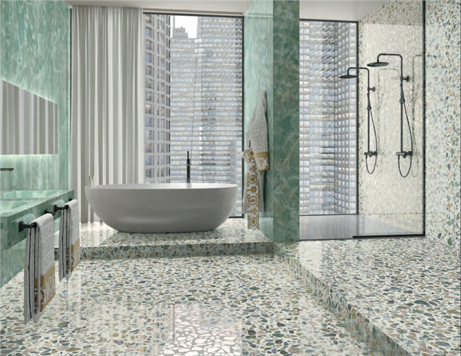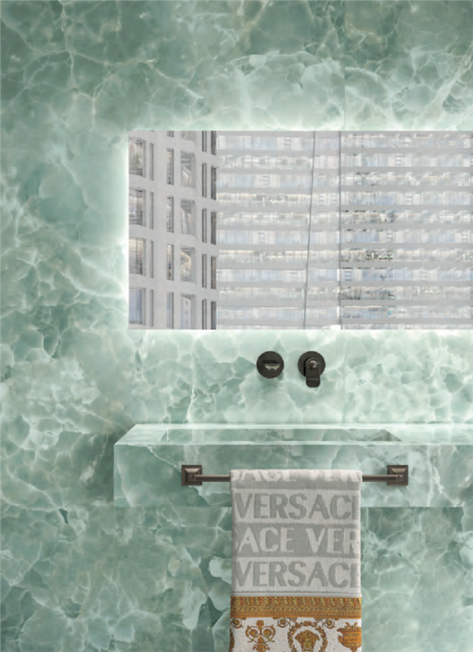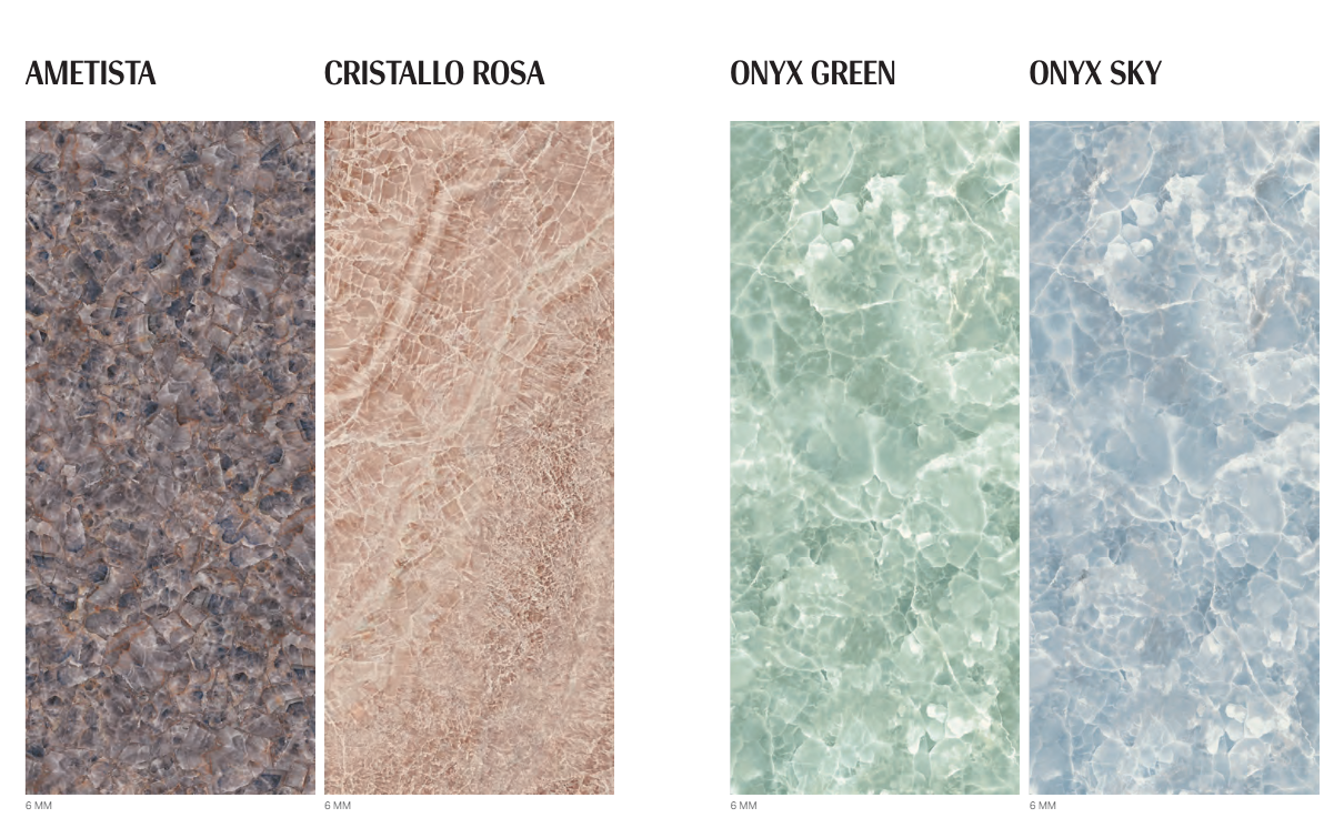 La collezione GEMSTONE è ispirata alle pietre semipreziose più eleganti che la natura ha saputo creare nel corso dei millenni. Superfici in grande formato che abbracciano una nuova idea di lusso, che privilegia le forme organiche e i materiali più rari e sofisticati. Il design incontra l’idea di una bellezza naturale, nella quale le sorprendenti sfumature degli onici e le profondità dei cristalli colorati disegnano pavimenti inediti e quinte scenografiche per gli spazi della casa e dell’ospitalità. . Grandi lastre 120x280 in spessore 6 mm, pavimenti e rivestimenti nei formati 120x120 e 60x120 possono essere abbinati a preziosi elementi decorativi iconici della maison per trasformare gli spazi in ambienti sempre unici e speciali.