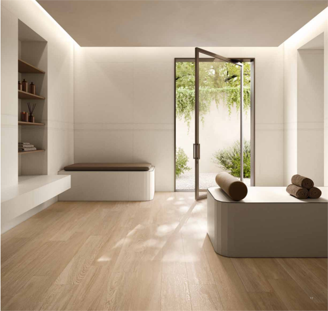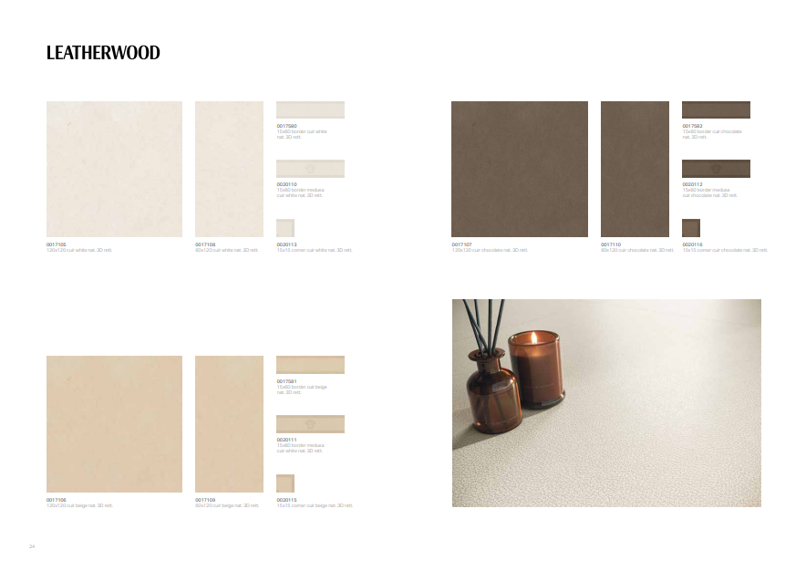 LEATHERWOOD BISCUIT NATURALE 3D 20X120 Con il progetto Leatherwood, Versace Ceramics propone nuove superfici pensate per gli ambienti di lusso, dall’eleganza esclusiva e contemporanea. Il legame tra moda e design si ;esprime catturando l'essenza di materiali pregiati, come la pelle martellata e i parquet in legno naturale. La collezione valorizza ;le qualità di entrambi i materiali e li re-interpreta attraverso inedite commistioni decorative dal mood geometrico e tridimensionale ,sono pensate per trasferire il lusso e l’eleganza esclusiva del lifestyle Versace in tutti gli ambienti della casa, a partire dai pavimenti, passando per le zone living, fino alla sala da bagno. In ogni contesto progettuale i soggetti iconici della maison diventano preziosi elementi decorativi, che insieme alle lastre ceramiche, trasformano gli spazi in ambienti sempre unici e speciali.