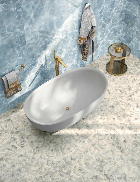 La collezione GEMSTONE è ispirata alle pietre semipreziose più eleganti che la natura ha saputo creare nel corso dei millenni. Superfici in grande formato che abbracciano una nuova idea di lusso, che privilegia le forme organiche e i materiali più rari e sofisticati. Il design incontra l’idea di una bellezza naturale, nella quale le sorprendenti sfumature degli onici e le profondità dei cristalli colorati disegnano pavimenti inediti e quinte scenografiche per gli spazi della casa e dell’ospitalità. . Grandi lastre 120x280 in spessore 6 mm, pavimenti e rivestimenti nei formati 120x120 e 60x120 possono essere abbinati a preziosi elementi decorativi iconici della maison per trasformare gli spazi in ambienti sempre unici e speciali.