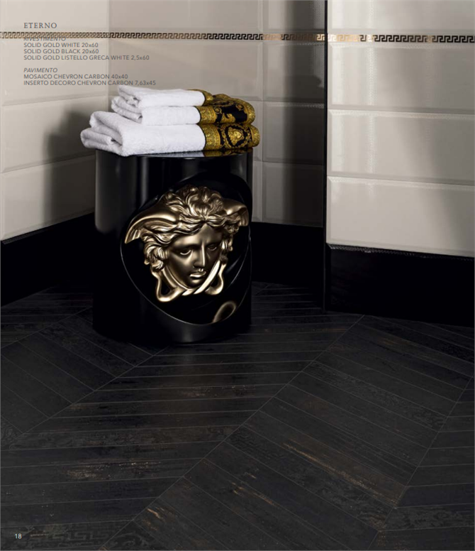 PAVIMENTO ETERNO MOSAICO CHEVRON CARBON 40x40 BRUCIARE IL LEGNO ERA UNA TECNICA GIAPPONESE PER CONSERVARLO. NELLA NOSTRA CONTEMPORANEITÀ L’EFFETTO MONOCROMATICO È L’ETERNA BELLEZZA. SERIE, COLORI E MATERICITÀ DIFFERENTI SI INCONTRANO E SI COMPENETRANO ALLA RICERCA DI UN IDEALE ESTETICO UNICO E RICONOSCIBILE. PROGETTI DI INTERIOR DESIGN DI CUI LA TRASVERSALITÀ DELLE COLLEZIONI È LA VERA ESSENZA. ARTICOLO PRODOTTO DALLA VERSACE CERAMICS