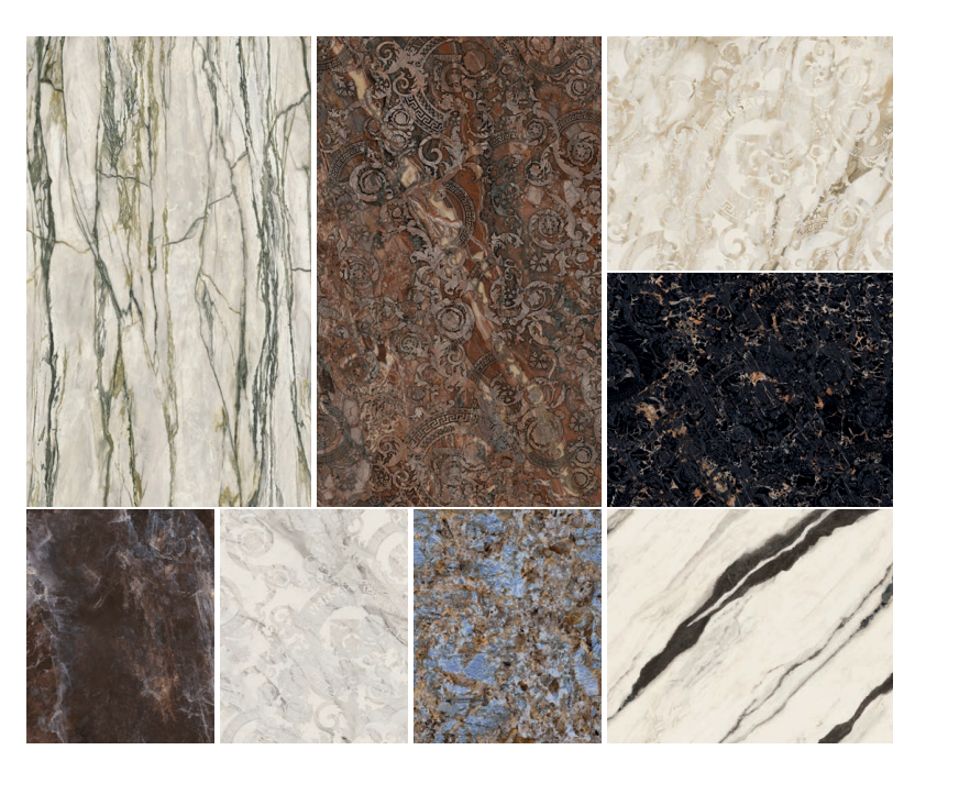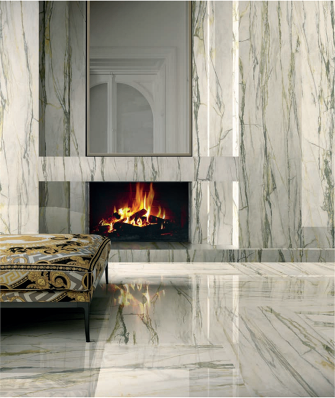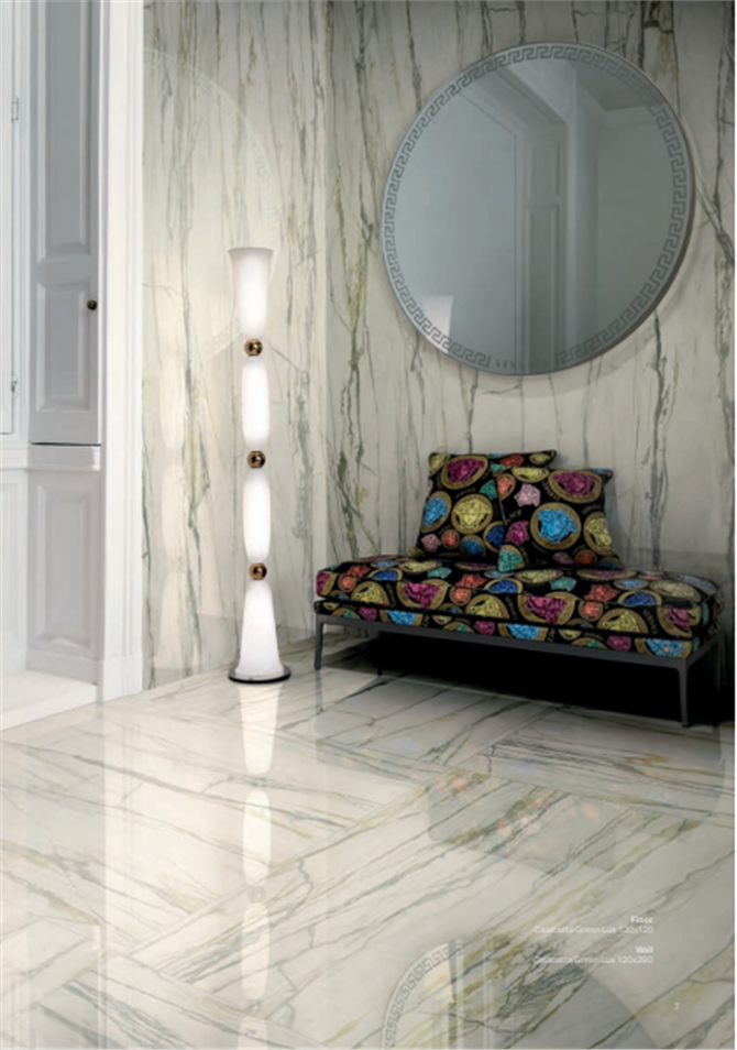 Effetto marmo: una scelta di stile Il fascino lussuoso dei marmi più pregiati trova la massima espressione nel progetto Maximvs, che nasce da un' accurata selezione di 8 diverse tipologie, la cui bellezza naturale viene esaltata dalle grandi lastre e dall' effetto scintillante delle superfici. Nella collezione trovano spazio marmi di provenienza italiana, tradizionalmente presenti nelle dimore nobiliari, così come altre varietà dal fascino esotico, caratterizzate da accenti di colore che richiamano l' opulenza delle pietre preziose. Le superfici Versace Ceramics sono pensate per trasferire il lusso e l'eleganza  in tutti gli ambienti della casa, a partire dai pavimenti passando per le collezini living, fino alla sala da bagno .