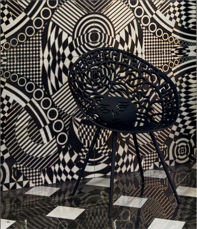 Le superfici Versace Ceramics sono pensate per trasferire il lusso e l'eleganza esclusiva del lifestyle Versace in tutti gli ambienti della casa, a partire dai pavimenti passando per le collezini living, fino alla sala da bagno . In ogni contesto progettuale i soggetti iconici della maison diventano preziosi elementi decorativi , che insieme alle lastre ceramiche , trasformano gli spazi in ambienti sempre unici e speciali . la cui bellezza viene esaltata dalle grandi lastre e dall'effetto scintillante delle superfici , Nella collezione trovano spazio marmi di provenienza Italiana , tradizionalmente presenti nelle dimore nobiliari , così come altre varietà dal fascino esotico, caratterizzate da accenti di colore che richiamano l'opulenza delle pietre preziose . ARTICOLI PRODOTTI DALLA VERSACE CERAMICS