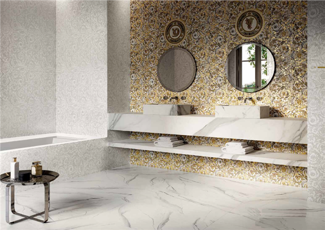 LE SUPERFICI VERSACE CERAMICS SONO PENSATE PER TRASFERIRE IL LUSSO E L’ELEGANZA ESCLUSIVA DEL LIFESTYLE VERSACE IN TUTTI GLI AMBIENTI DELLA CASA, A PARTIRE DAI PAVIMENTI, PASSANDO PER LE ZONE LIVING, FINO ALLA SALA DA BAGNO.