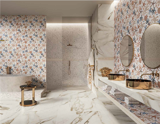 LE SUPERFICI VERSACE CERAMICS SONO PENSATE PER TRASFERIRE IL LUSSO E L’ELEGANZA ESCLUSIVA DEL LIFESTYLE VERSACE IN TUTTI GLI AMBIENTI DELLA CASA, A PARTIRE DAI PAVIMENTI, PASSANDO PER LE ZONE LIVING, FINO ALLA SALA DA BAGNO.