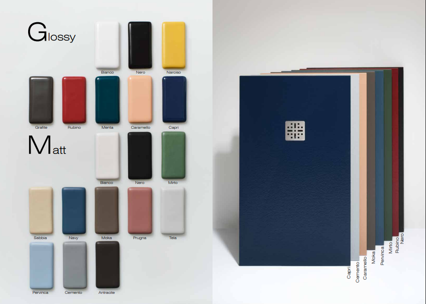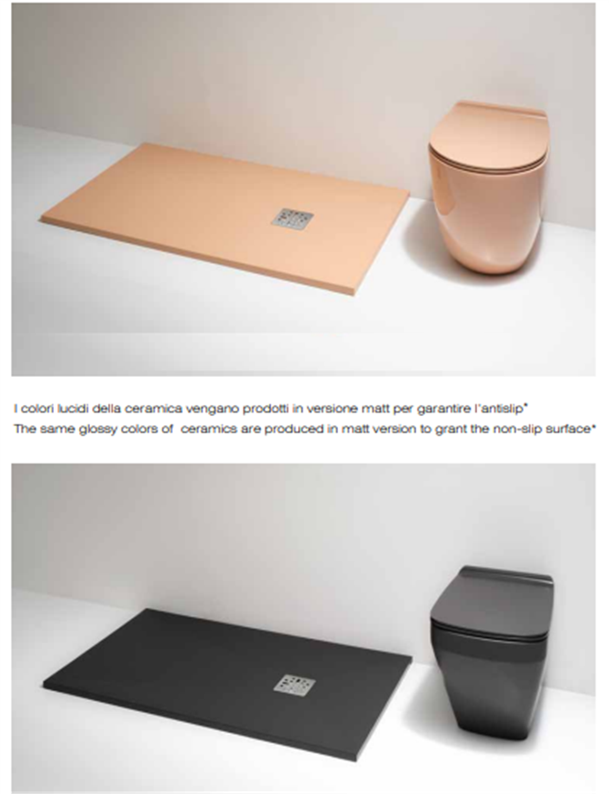 La nuova proposta: piatti doccia con finitura effetto pietra realizzati in un materiale innovativo composto di cariche minerali e resine purissime, declinato nelle 19* nuance della paletta colori di Simas. La fantasia del colore al servizio dell’arredo bagno, la zona doccia realizzata nello stesso colore di lavabi e sanitari apre nuovi orizzonti al design della zona servizi, vestendo con stile la stanza da bagno. Questo progetto nasce dalla ricerca di soluzioni che riescano a coniugare il design, la qualità e la funzionalità attraverso la piacevole sensazione tattilo-visiva, la possibilità di lavorazioni su misura, la grande resistenza nel tempo e il piacere del colore che invade l’ambiente. I piatti doccia hanno una altezza contenuta a soli 2.5 e 3.00 cm., possono essere posati in ogni spazio, la versatilità del materiale consente di fare una lavorazione su misura oltre che “on demand” anche direttamente in cantiere** I piatti doccia sono caratterizzati dal bordo in finitura e possono essere lavorati a misura con ripristino del bordo*** La produzione made in italy garantisce qualità, caratteristiche tecniche e fisiche testate secondo rigorosi standard internazionali grande resistenza nel tempo. La griglia copripiletta oltre che in cromo, può essere realizzata in tinta con il colore del piatto doccia. nelle misure 100x70-120x70-140x70-100x80-120x80-140x80 disponibili in 8 colorazioni lucide e 11 colorazioni matt