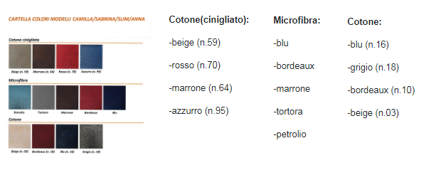 POLTRONA DISABILI O TERZA ETA' CAMILLA Lift: posizionamento in altezza della seduta della poltrona. Relax: posizionamento schienale e poggia gambe, grazie ai 2 motori separati della poltrona permette di regolare in modo del tutto indipendente l'inclinazione dello schienale e del poggia gambe, per una maggiore comodità. Fornita a 2 motori - KIT ROLLER - Comando a cavo - Struttura in ferro - Trasformatore a 29 Volt. Poltrona made in Italy. Il Kit Roller è utile per spostare la poltrona agevolmente da una stanza all’altra. Premendo la leva posta sulla base dello schienale, fuoriescono 4 ruote semplificando lo spostamento della poltrona. LARGHEZZA 75 cm, ALTEZZA 107 cm, PROFONDITA 84 cm chiusa/165 cm aperta, PESO 65kg, CORRENTE 220-110 Volt (29 V), CONSUMO 80 Watt, ASSISTENZA IN TUTTA ITALIA, GARANZIA ANNI 2, CERTIFICAZIONE CE. Tessuti antimacchia, idrorepellenti e atossici. DISPOSITIVO MEDICO CLASSE 1
