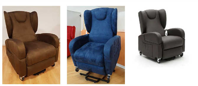 POLTRONA DISABILI O TERZA ETA' GENNY Lift: posizionamento in altezza della seduta della poltrona, grazie al pistone Okin supporta un'alzata massima di Kg. 170 Relax: posizionamento schienale e poggia gambe, grazie ai 2 motori separati della poltrona permette di regolare in modo del tutto indipendente l'inclinazione dello schienale e del poggia gambe, per una maggiore comodità. - Fornita a 2 motori - Kit Vibro-massaggio non applicabile - Comando a cavo DISPOSITIVO MEDICO CLASSE 1 Braccioli removibili - Maniglione posteriore per facilitare le operazioni di spostamento - Dotata di 4 ruote (di cui quelle posteriori bloccanti) - Struttura in ferro - Trasformatore a 29 Volt. LARGHEZZA 77 cm, ALTEZZA 103 cm, PROFONDITA 85 cm chiusa/165 cm aperta, larghezza seduta interna 56 cm, profondità seduta interna 53 cm, PESO 65kg, CORRENTE 220-110 Volt (29 V), CONSUMO 80 Watt, ASSISTENZA IN TUTTA ITALIA, GARANZIA ANNI 2, CERTIFICAZIONI CE, RHOS, TUV.