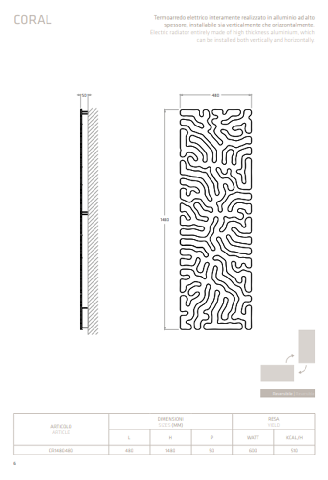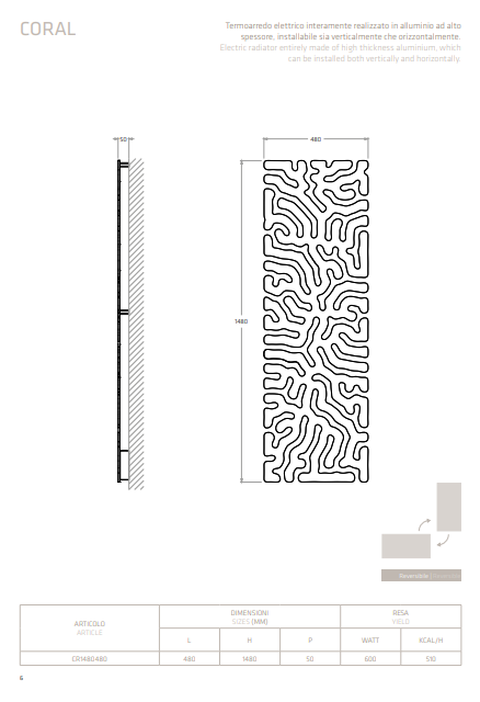 Ispirata dalla ricerca di applicazione dei sistemi generativi, la collezione Coral si propone come punto d’incontro tra design e natura all’interno delle nostre case. Termoarredi elettrici ad alta resa, realizzati interamente in alluminio, sono alimentabili sia da punto luce che tramite cavo plugin, e programmabili tramite app che permette di impostare orari e giorni di accensione. elettrico è disponibile in tutte le colorazioni Ral , Ecomalta , Anodiche e Micacee , disponibile anche nella versione tonda