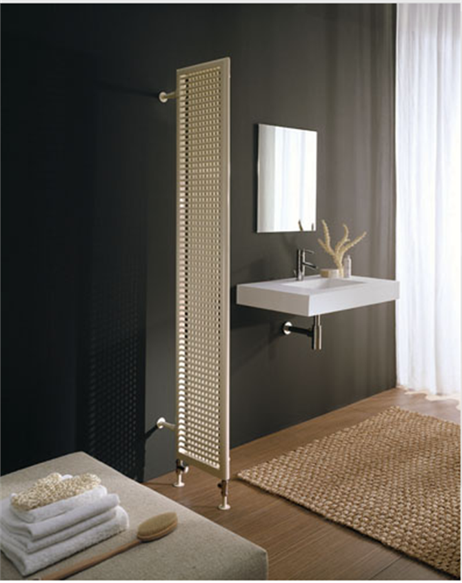Non solo un radiatore, ma anche un’originale parete divisoria che si arricchisce di accessori come il pratico portasciugamano ed i comodi portabiti.
