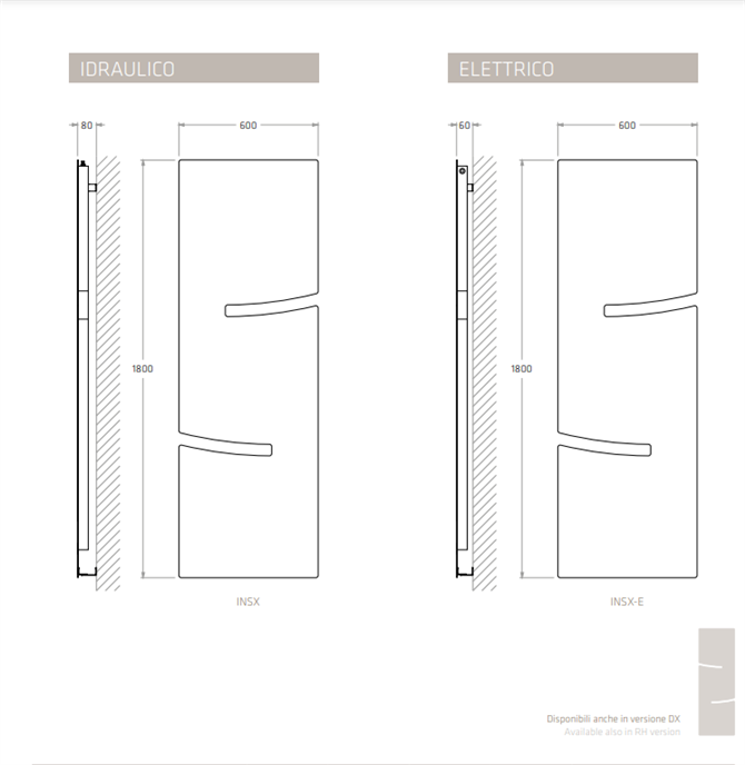 Un rettangolo puro, una geometria assoluta, una superficie omogenea solcata solo da due “tagli” dall’andamento curvilineo ad altezze differenti che diventano pratici portasalviette: Infra è il radiatore dalla forma essenziale che sembra sorridere. Un modello unico (600x1800 mm), pensato per essere installato in verticale fra lavabo e bidet così da servire entrambi. disponibile in tutte le colorazioni Ral , Ecomalta , Anodiche e Micacee . Disponibile in versione idraulico