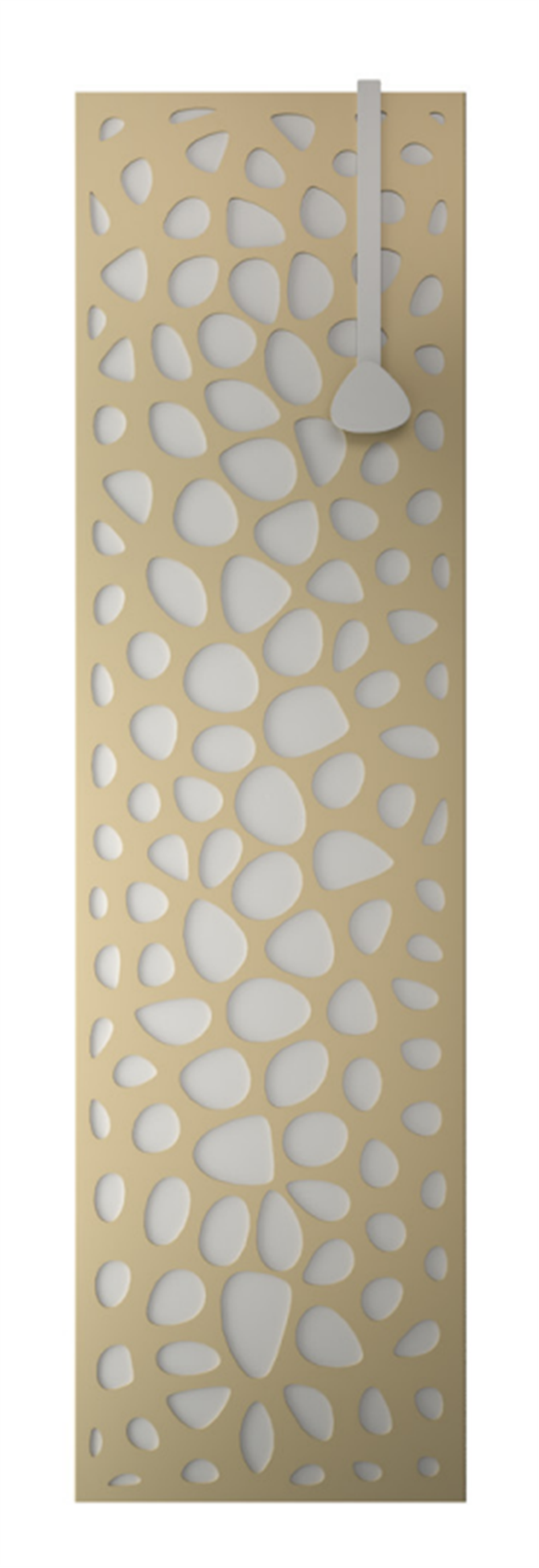 Forme organiche, illusioni ottiche ottenute tramite il colore, campiture cromatiche che sembrano generare movimento in un oggetto chiaramente statico. I nuovi approcci al design assistito dagli algoritmi si ritrovano in questo termoarredo che gioca sulla sovrapposizione di superficie e preziose finiture. Completano la proposta i portasalviette opzionali. Termoarredo elettrico programmabile con app dedicata, interruttore integrato RGB con visualizzazione cromatica della temperatura, doppio sistema di alimentazione. disponibile in tutte le colorazioni Ral , Ecomalta , Anodiche e Micacee Disponibile anche in versione idraulico