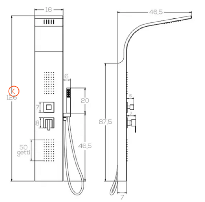 COLONNA DOCCIA KANSAS 150 GETTI ANTICALCARE