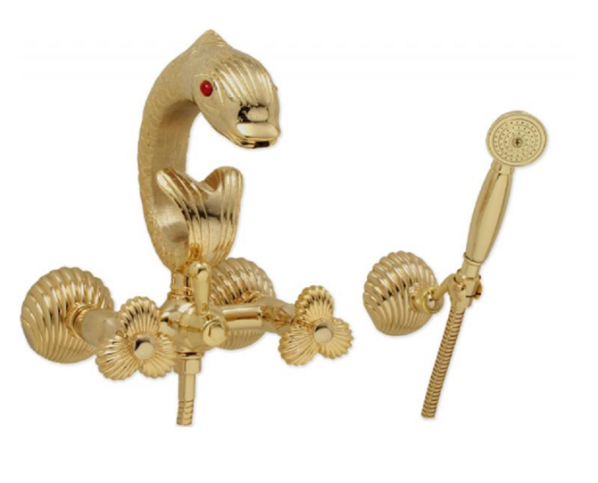 RUBINETTO LAVABO 3 FORI CONCHIGLIA ORO