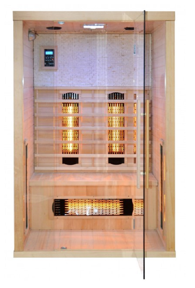 La sauna è uno dei migliori modi per depurare corpo e mente e negli ultimi tempi, Un ottimo rimedio per combattere lo stress Il rimedio migliore è cercare di migliorare la propria qualità della vita che oggi si misura a ciascuno di noi che riesce a ritagliarsi del tempo libero per sé stesso. Via libera quindi a tutti i rimedi che possono sollevarci dallo stress a chilometri zero, magari solo per poco tempo ma effettuati in maniera costante. Sappiamo che il beneficio più immediato della sauna finlandese e della sauna a infrarossi è quello di sollevarci dalla tensione nervosa e un generale relax. Sauna finlandese e sauna a infrarossi sono ideali per dissipare le tensioni e combattere lo stress fisico e mentale. Oltre al sistema TRADIZIONALE di riscaldamento con stufa a pietre proponiamo altre sorgenti di calore uniche basate sui raggi infrarossi. Questa tecnologia garantisce un'azione ottimale che agisce in profondita su tutto il corpo. Nella scelta della sauna da acquistare è importante tenere in considerazione i materiali, la struttura della cabina e lo spazio che si ha a disposizione. Dimensioni: 120 x 110 x 190 cm - Parete in pietra - 5 irradiatori infrarossi in vetro - Radio, usb, mp3 - Ionizzatore per profumoterapia - Cromoterapia 7 colori - Temperatura: da 18 a 65 °C - Potenza: 1750 W - Legno: Hemlock