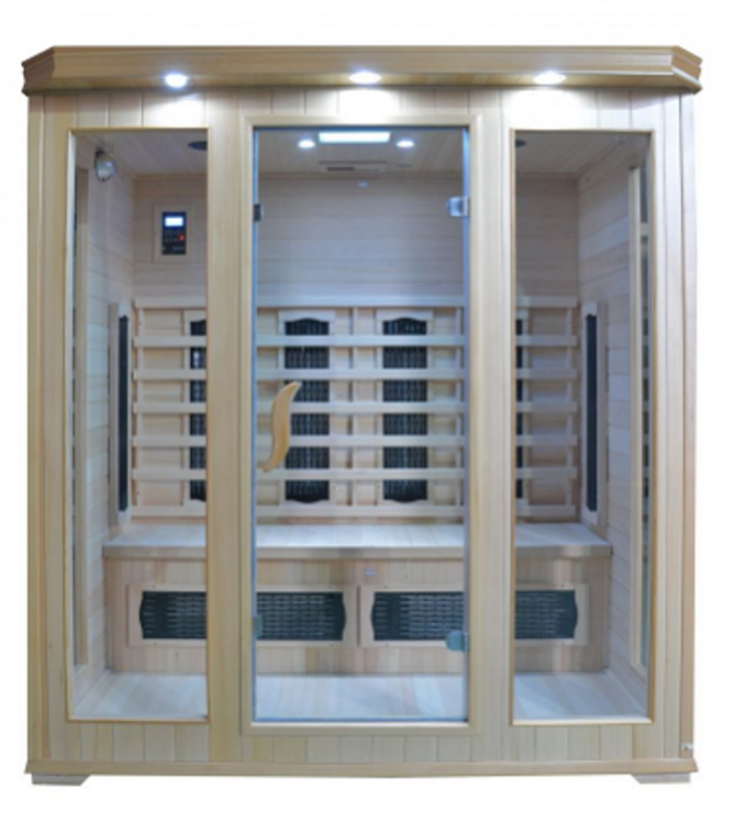 La sauna è uno dei migliori modi per depurare corpo e mente e negli ultimi tempi, Un ottimo rimedio per combattere lo stress Il rimedio migliore è cercare di migliorare la propria qualità della vita che oggi si misura a ciascuno di noi che riesce a ritagliarsi del tempo libero per sé stesso. Via libera quindi a tutti i rimedi che possono sollevarci dallo stress a chilometri zero, magari solo per poco tempo ma effettuati in maniera costante. Sappiamo che il beneficio più immediato della sauna finlandese e della sauna a infrarossi è quello di sollevarci dalla tensione nervosa e un generale relax. Sauna finlandese e sauna a infrarossi sono ideali per dissipare le tensioni e combattere lo stress fisico e mentale. Oltre al sistema TRADIZIONALE di riscaldamento con stufa a pietre proponiamo altre sorgenti di calore uniche basate sui raggi infrarossi. Questa tecnologia garantisce un'azione ottimale che agisce in profondita su tutto il corpo. Nella scelta della sauna da acquistare è importante tenere in considerazione i materiali, la struttura della cabina e lo spazio che si ha a disposizione. Dimensioni: 175 x 135 x 190 cm - Pannello di controllo - Cornice esterna con illuminazione a led - 8 irradiatori infrarossi in ceramica - Radio, usb, mp3 - Ionizzatore per profumoterapia - Cromoterapia a 7 colori - Temperatura: da 18 a 65°C - Potenza: 2800 W - Legno: Hemlock